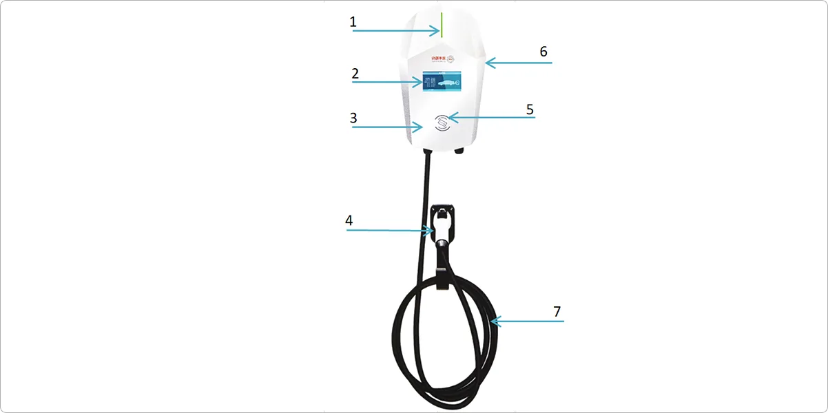 4. Nabíjecí pistole: standard GB/T 20234.2, připojená k 5metrovému nabíjecímu kabelu;
